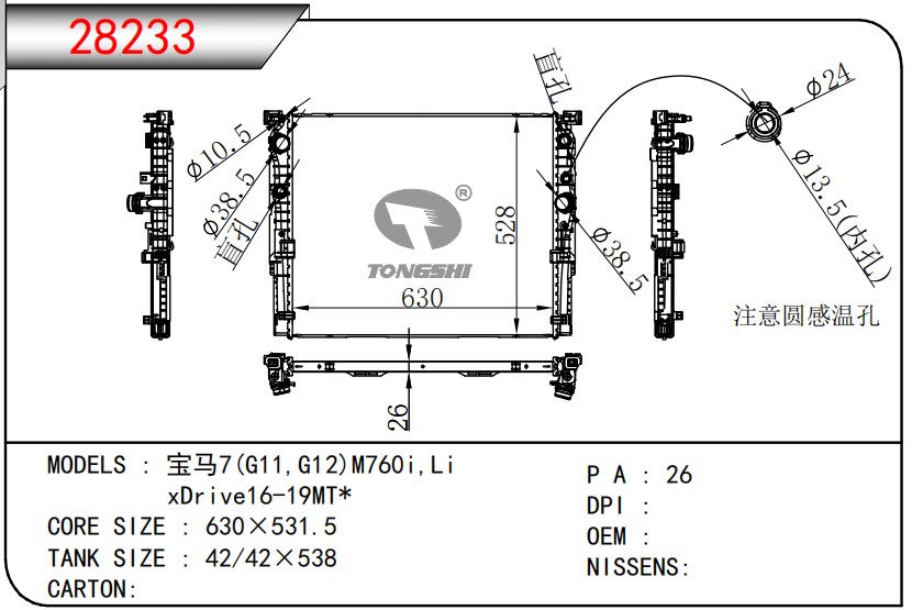 適用于寶馬 E30 320 i 82-93 AT散熱器OEM:1723 825/1719 261