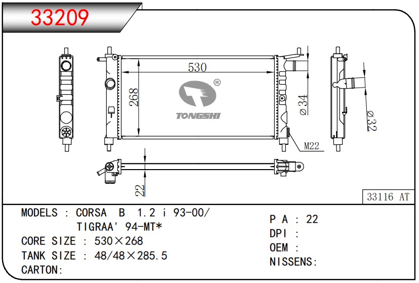 適用于奇瑞瑞虎(新款) MT散熱器 OEM : F1301000B1