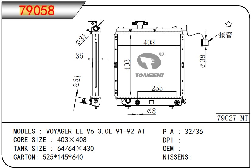 適用于寶馬 E30 320 i 82-93 AT散熱器OEM:1723 825/1719 261